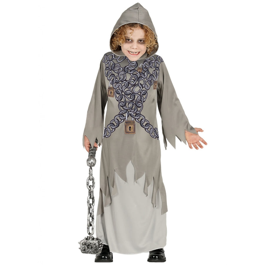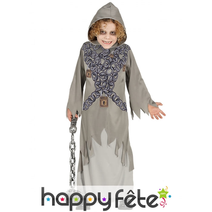 Lors du prochain Halloween, votre fils fera une petite frayeur à ses amis avec ce costume de petit fantôme gris enchaîné.