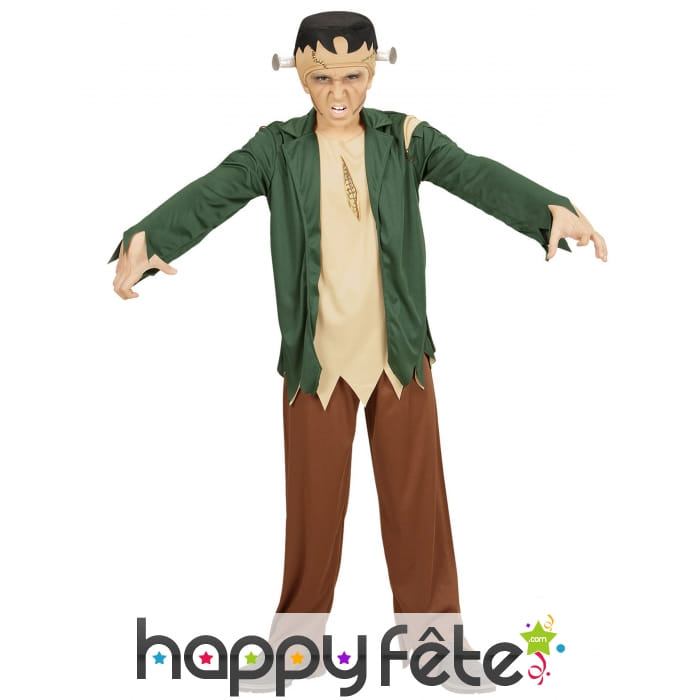 La coiffe apporte la touche finale du costume et représente la tête de la créature de Frankenstein transpercée par les appareils du savant fou.