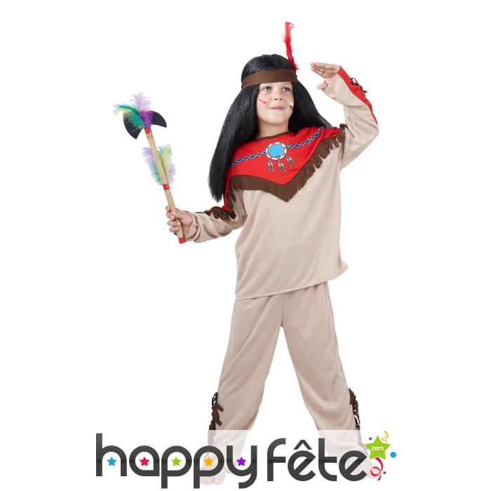 Jouer aux indiens est une activité qui va bien occuper les petits intrépides. Votre enfant ne sera pas prêt d'oublier les aventures exceptionnelles qu'il vivra dans son costume de petit indien rouge et marron. Ce déguisement est proposé pour les garçons de 4 à 12 ans. Le haut est constitué par une tunique beige à manches longues. Un poncho indien de couleur rouge et marron a été cousu dessus. Le bout de chaque manche est orné de franges. Un pantalon ultra confortable est aussi inclus dans le costume. Il est élastique au niveau de la taille dans sa couleur beige, sans oublier ses petites franges marron sur le bas des jambes. Le bandeau pour la coiffure est élastique, de couleur marron, et agrémenté d'une plume rouge. C'est parti pour un scénario plein de rebondissements !