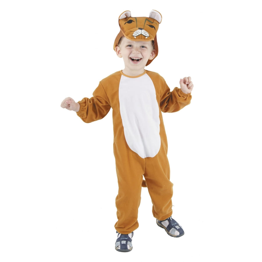 Avec ce costume de petit lion marron blanc, votre petit bambin pourra rugir comme le roi des animaux à son goûter d'anniversaire.