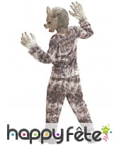 Cette tenue est complétée par un masque intégral représentant la tête d'un loup garou avec la gueule ouverte.