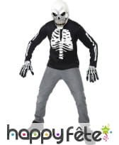 Cette tenue est complétée par une cagoule floquée à l'avant de la tête d'un squelette souriant.