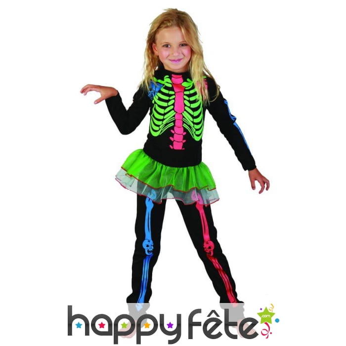 Nous proposons ici un costume de petit squelette coloré pour fillette.