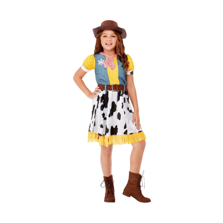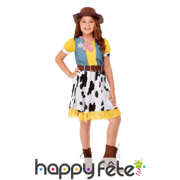 Imitant la tenue d'un célèbre cow boy de dessin animé, ce costume consiste en une robe faite de deux parties.