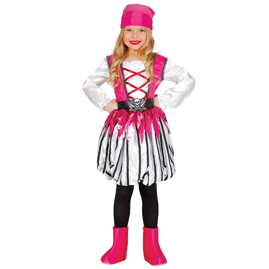 Il comprend une robe, une ceinture noire avec une fausse boucle affichant l'emblème des pirates et un bandeau coloris rose.