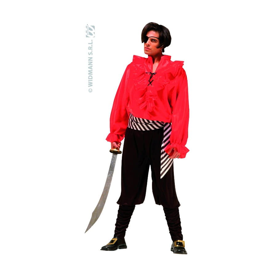 Vous vous transformerez en pirate pour le carnaval , dans ce déguisement vous aurez l'air d'un méchant pirate si vous êtes invité à une fête ayant pour thème la piraterie ce déguisement ira parfaitement. De taille L, ce costume est composé d'un pantalon noir, des boucles de chaussure, une chemise rouge, une ceinture noire et rouge et sans oublier le fameux cache-oeil.