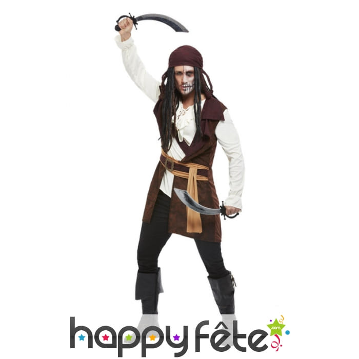Devenez l'un des pirates les plus recherché des grandes mers grâce à ce Costume de pirate marron pour homme avec bandeau.