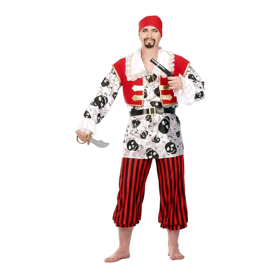 Si dans une fête vous aimez faire peur et donner l'image d'un dur à cuir, ce déguisement unique de pirate pour homme uniquement pour tailles 50 et 54 fera l'affaire. Avec son pantalon, sa tunique, son gilet, son bandeau et sa ceinture, de couleur rouge, blanche, et noire, et muni des accessoires tels le couteau et un pistolet par exemple, vous vous attirerez certainement le respect. C'est un déguisement d'une série limitée, donc uniquement disponible dans la limite des stocks.