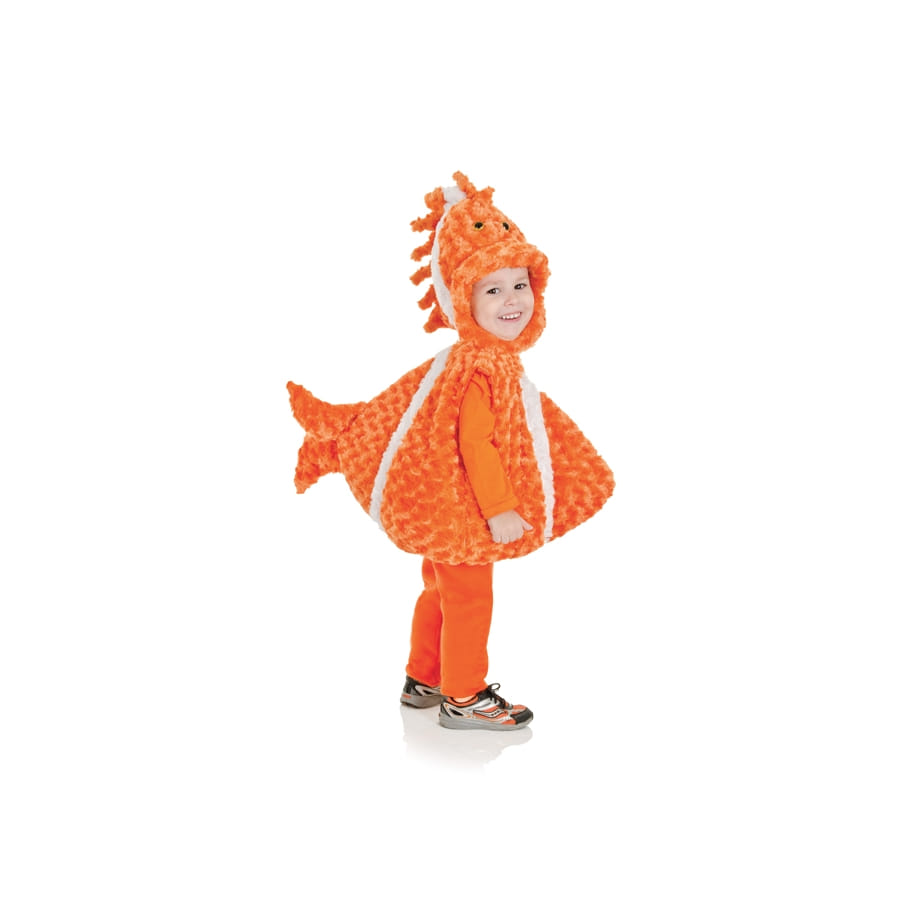 Pour les déguisements d'enfants, c'est toujours mieux de jouer sur le côté mignon, comme avec ce costume de poisson en peluche pour enfant. Tout simplement adorable et d'une belle couleur gaie, ce costume est composé d'une combinaison à capuche de couleur orange avec deux traits blancs représentant le corps et la tête du poisson. Le justaucorps n'est pas fourni avec le déguisement. Les tailles disponibles sont pour petite fille et petit garçon de 18 à 24 mois, 2 à 4 ans et 4 à 6 ans.