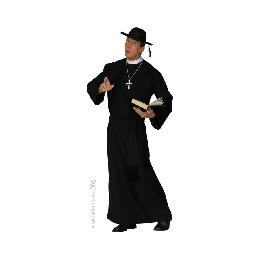 Pour le carnaval pourquoi ne pas vous déguiser en prêtre vos amis ne vous reconnaîtrons pas dans ce déguisement. Vous vous transformerez le temps d'une soirée ou d'une journée en religieux. Le costume est de taille L , la robe est noire avec un col blanc, ayant de longues manches et une ceinture à la taille.