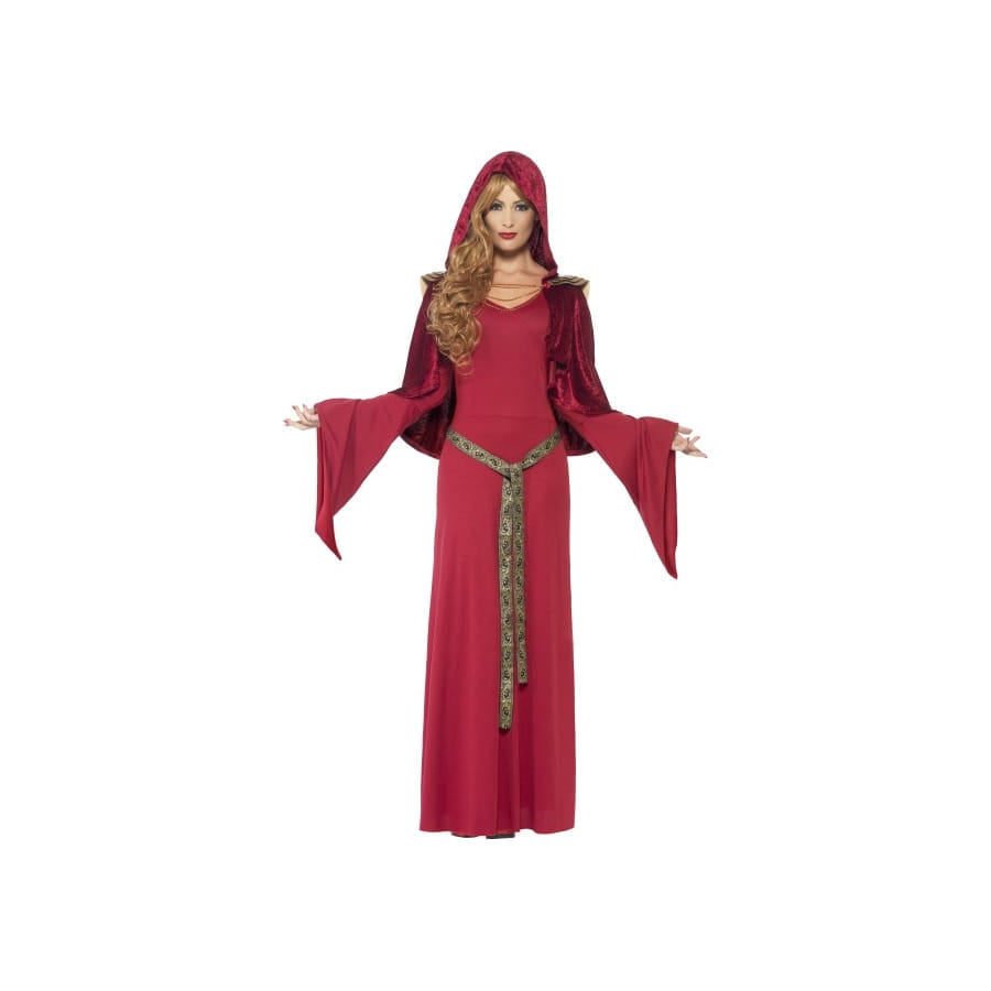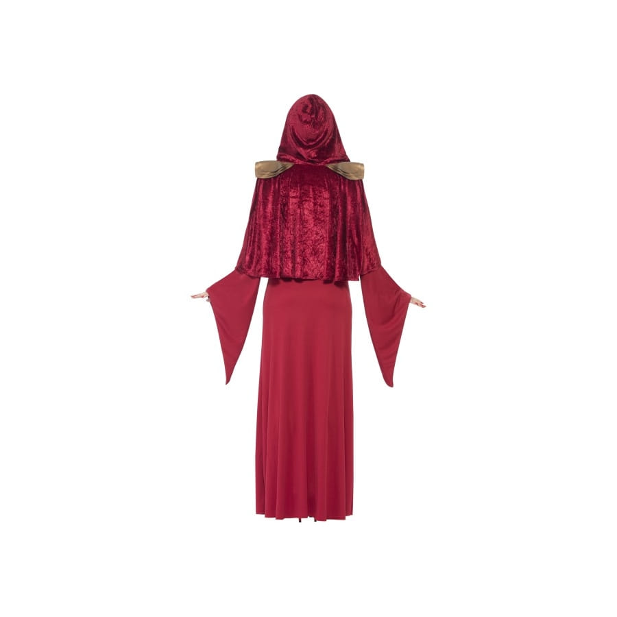Vous aurez de quoi cultiver l'intrigue autour de vous en portant ce déguisement de prêtresse. Ce costume mettant à l'honneur ces dames, est muni d'une longue robe entièrement de couleur rouge avec les manches longues évasées. Une ceinture de couleur marron est attachée avec cette robe. Vous aurez également une cape de couleur rouge, également dotée d'une capuche. Nous proposons 3 tailles pour ce déguisement, qui sont : L, M et S. Pour les petits détails qui peuvent faire la différence, nous avons quelques petits conseils : ornez vos ongles de vernis rouge et utilisez un rouge à lèvre bien rouge, le maquillage devra bien ombrer vos yeux.