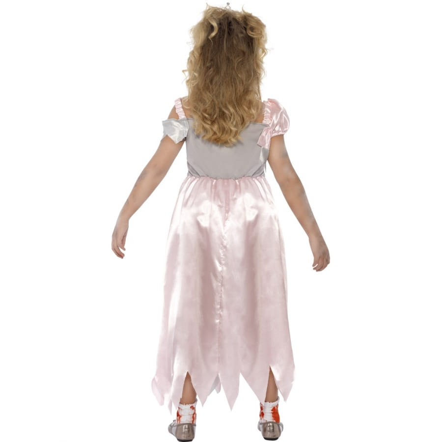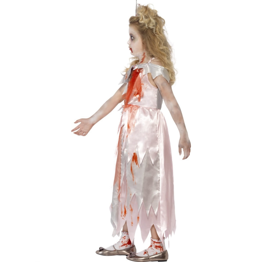 Ce qui est bien avec les déguisements pour Halloween, c'est qu'on peut faire des zombies avec n'importe quel personnage. Nous vous proposons cette fois-ci un costume de princesse zombie pour enfant. Composé d'une robe en lambeau, et qui paraît déchirée au niveau de la poitrine, pour laisser entrevoir les organes ensanglantés. Cette robe est imprimée et affiche des coloris rouge et rose.