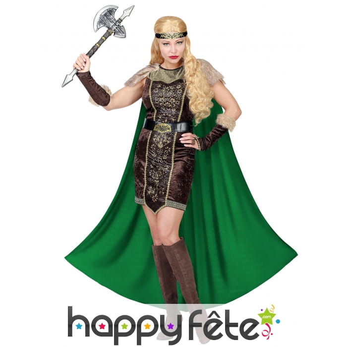 Surprenez vos amis en prenant l'allure d'une combattante médiévale lors d'une soirée sur le thème historique, avec le costume de reine viking avec longue cape.