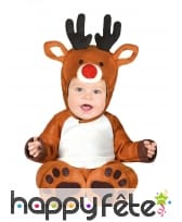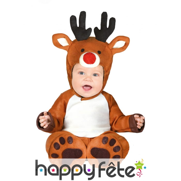 Glissez votre petit bout de chou dans le traineau du Père Noël, grâce au costume de renne pour bébé.