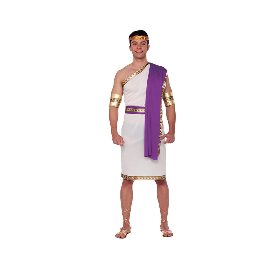 Remontez le temps quelques siècles en arrière et mettez en avant la beauté des accoutrements romains d'antan. Homme ou femme ne lésinaient pas sur les moyens pour avoir de magnifiques tenues en ces temps-là. Faites revivre cette belle civilisation, Messieurs, en portant fièrement ce costume romain. Il est composé d'une tunique de couleur blanche, d'une ceinture violette et dorée, d'une capede couleur violette, de bracelets dorés et d'une coiffe dorée. Complétez-le avec des magnifiques spartiates dorés comme ceux que portaient les romains avant et votre déguisement sera plus que parfait. Vous ne manquerez pas de faire sensation avec ce déguisement lors de fêtes à thème historique, d'autant plus que la civilisation romaine n'est pas assez représentée dans ces fêtes-là.