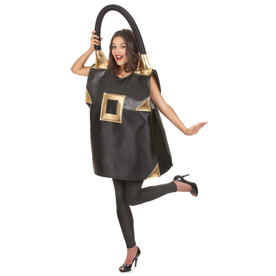 Faites sensation lors du prochain carnaval en arborant ce costume de sac à main noir pour femme.