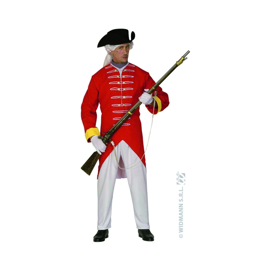 Le jour de gloire est arrivé... Enfilez votre déguisement : le pantalon, la tunique et le chapeau. Cet ensemble blanc, rouge et jaune est parfait pour se déguiser en soldat français pour un carnaval.