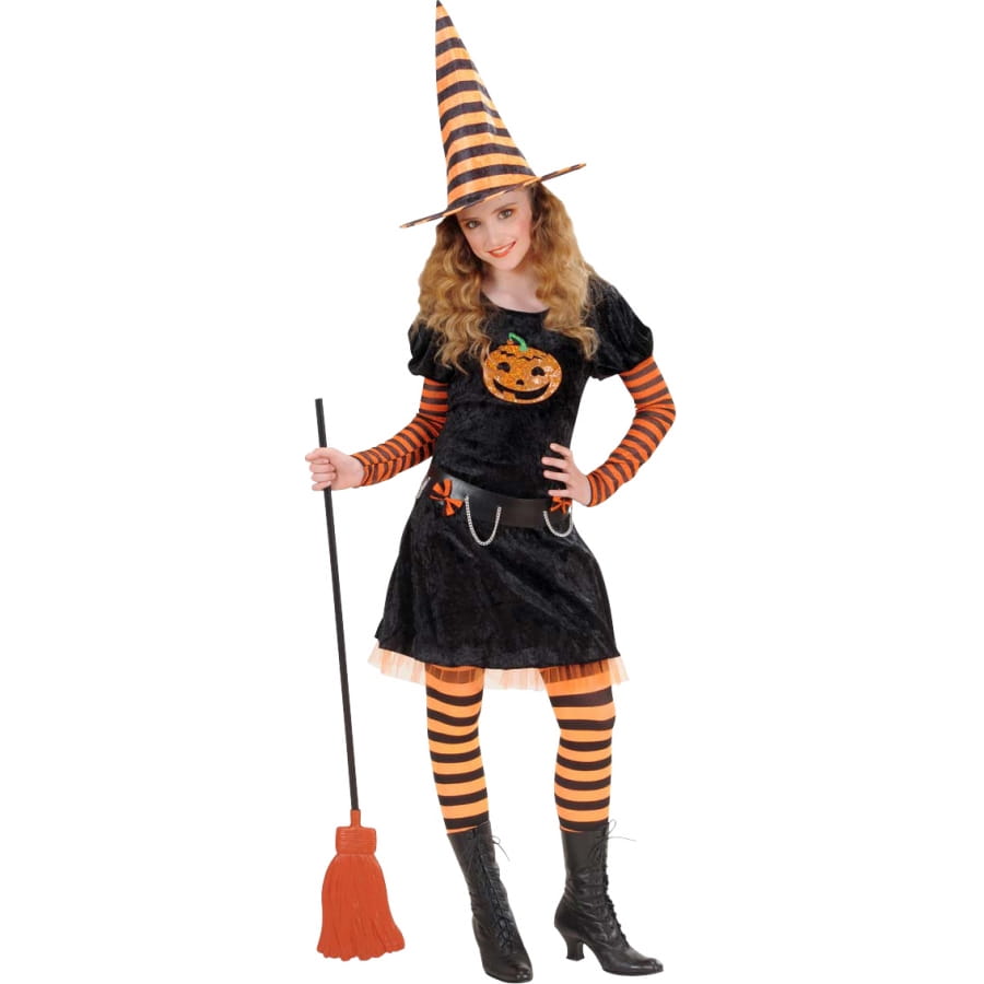 Set de déguisement d'Halloween, pour fille, composé d'une ceinture, d'une robe et d'un chapeau. Cet ensemble noir et orange est disponible pour les enfants de 5 à 7 ans, de 8 à 10 ans. C'est un parfait déguisement de sorcière citrouille.