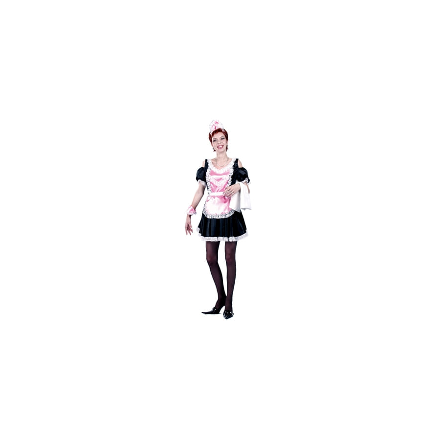 Tous les hommes rêvent de voir un jour leurs bien-aimées se déguiser en une jolie petite soubrette, serviable et bien attentionnée. Pourquoi ne pas satisfaire le vôtre le temps d'un soir en optant pour cet uniforme ? Il présente une petite robe noire, un tablier, une coiffe ainsi que des manchettes roses, disponible en taille 42. Ajoutez-y un collant transparent et des chaussures à talons, un joli sourire sur votre visage, et le tour sera joué !