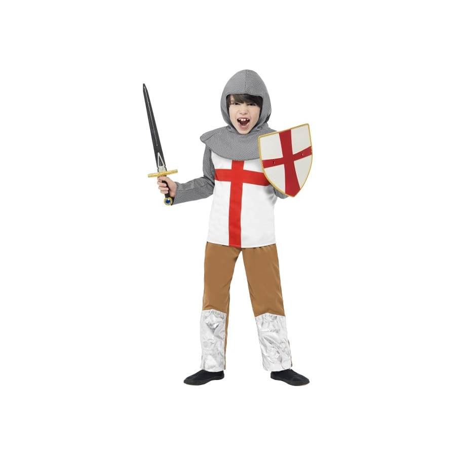 Un costume de grand chevalier est spécialement remarquable pour faire d'une fête une aventure inoubliable. Ce déguisement est composé d'une tunique blanche marquée de la croix rouge symbolique des templiers, d'un pantalon à deux ton. Il est équipé également d'une sorte de capuche grise en guise de heaume pour le chevalier. Il s'agit d'un costume pour les garçons de 7 à 9 ans et de 10 à 12 ans. Le nettoyage à sec est recommandé pour l'entretient du costume.