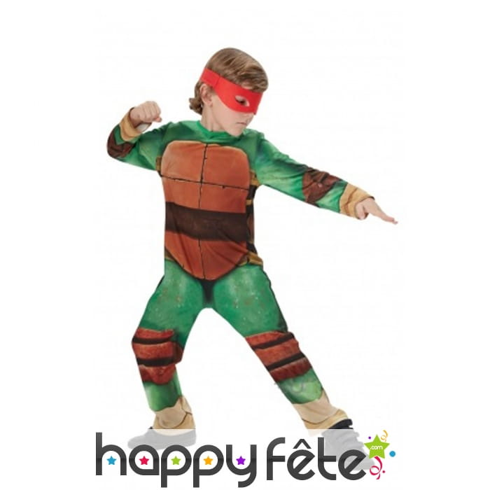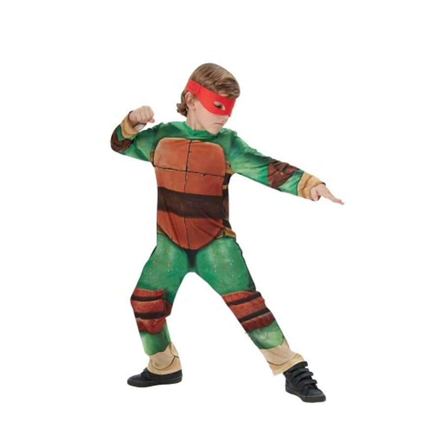 Avec ce costume de tortue Ninja pour enfant, votre bout de chou sera votre héros ! Ce déguisement sous licence Tortues Ninja comporte une combinaison verte et 4 loups de différentes couleurs (rouge, orange, bleu et violet). Votre petit pourra ainsi choisir d'incarner la tortue ninja de son choix. Des impressions marron sont présentes au niveau du buste, des genoux et des coudes pour simuler les divers empiècements et augmenter le réalisme. Ce déguisement conviendra aux enfants de 7/8 ans, 5/6 ans et 3/4 ans. C'est un superbe déguisement pour une fête déguisée, une fête d'école, un carnaval ou un cadeau à offrir pour un anniversaire.