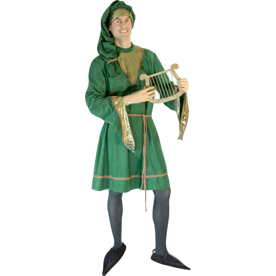 En fou du roi pour fête basée sur le thème médiéval ou moyen age, ce déguisement sera parfait. Ce costume de troubadour de taille 50/52 est en velours de couleur vert. Ce déguisement est composé d'une coiffe et d'une tunique ayant de longues manches et une ceinture.