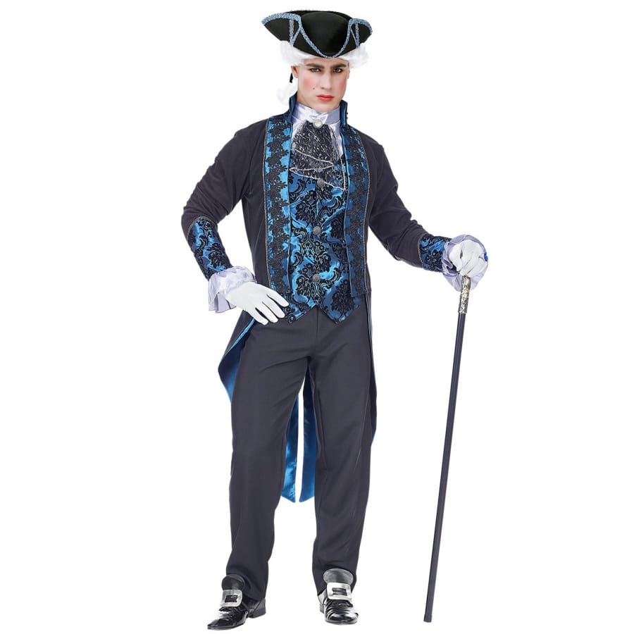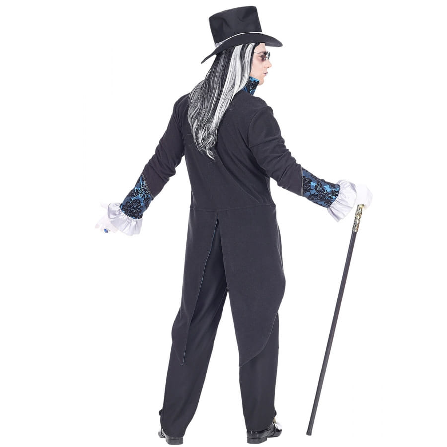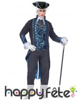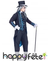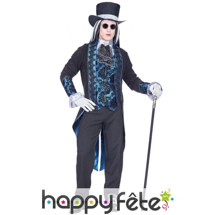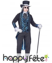 Le costume de vampire des années 1800 bleu et noir est destiné aux hommes.