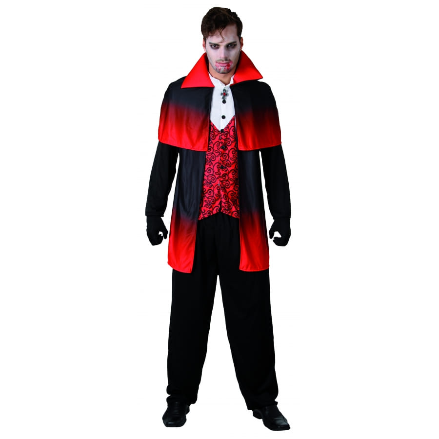 Les vampires sont des créatures nocturnes. Ils sortent la nuit pour aller se nourrir de sang ! Pendant la nuit d'Halloween, ils se mêlent à la foule pour faire la fête avec le commun des mortels. Messieurs, si vous envisagez de vous déguiser en vampire en cette grande occasion, choisissez sans hésiter ce superbe costume. Il s'agit d'un ensemble complet de couleur rouge et noire, à la fois chic et quelque peu terrifiant. Vous aurez à votre disposition une belle chemise avec tour de cou, un pantalon noir ainsi qu'une magnifique cape qui sublime le tout. Ce déguisement vous sera fourni en taille médium large. Ajoutez une petite couche de maquillage et ce costume vous permettra d'incarner le fameux Conte Dracula sans aucune difficulté !