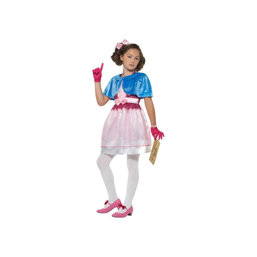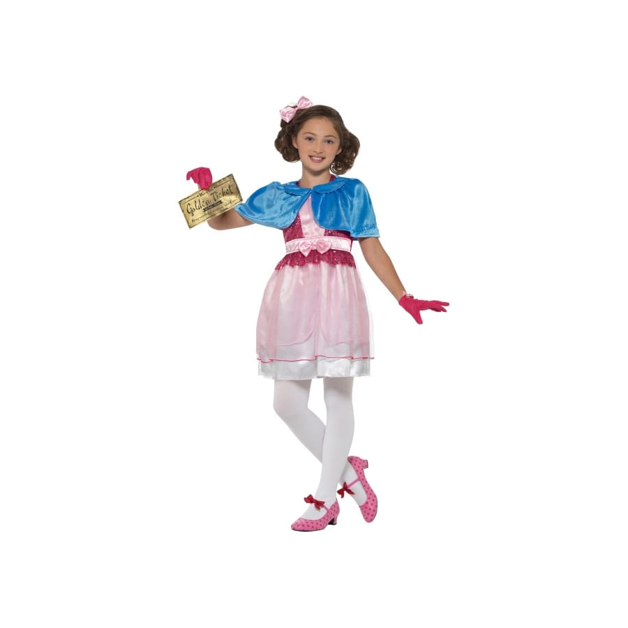Veruca Salt obtient son ticket d'or pour visiter la fabrique de chocolat de Willy Wonka. Entrez dans l'univers de cette jeune demoiselle au caractère manipulateur à travers le costume de Veruca Salt pour enfant, Roald Dahl, sous licence Charlie et la chocolaterie. Il s'agit d'une magnifique robe rose avec noeud sur le devant, par dessus laquelle sera enfilée une courte cape bleu satiné. Une paire de gants roses accompagne la tenue. La coiffure sera accessoirisée par un bandeau à noeud rose. Et enfin, n'oublions pas le fameux ticket d'or à tenir dans la main ! Il vous sera possible de commander le déguisement selon l'âge de votre petite fille. Il est proposé pour les 4 à 12 ans.