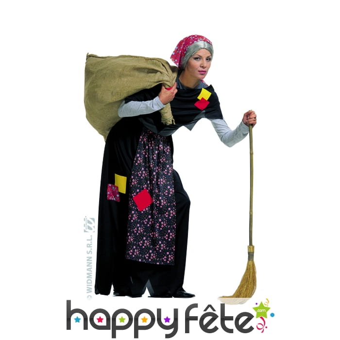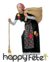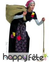 Vous voulez prendre quelques années? Ce tablier, cette jupe, ce châle et ce foulard de vieille vous y aidera. Cet ensemble noir, jaune, rose et rouge est disponible en taille L, M ou XL. Il est parfait pour se déguiser en vieille pour un carnaval.
