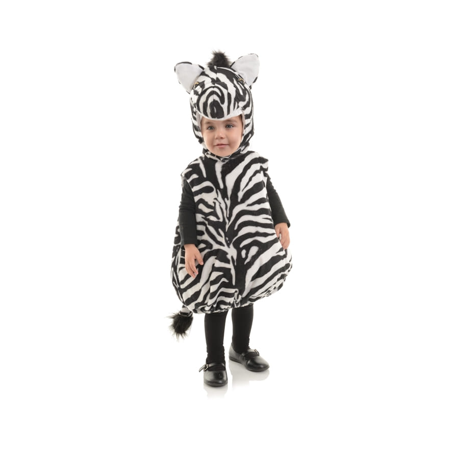 Une combinaison et une capuche, toutes les deux fabriquées en peluche, voilà ce que contient ce costume de zèbre en peluche pour enfant. Il est très agréable à porter et très facile à enfiler également. Vous verrez alors votre petite fille ou petit garçon mettant une combinaison à motif zébré en noir et blanc pour le corps du zèbre, et une capuche avec le même motif comprenant les yeux, le museau et la bouche grande ouverte. Tous les enfants entre 18 mois et 24 mois, 2 et 4 ans et 4 et 6 ans trouveront ce déguisement à leurs tailles. Nous ne fournissons pas de justaucorps avec cet ensemble.