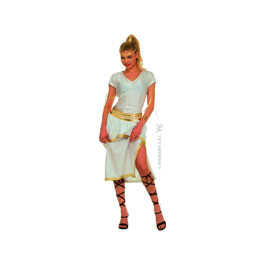 Transformez vous en déesse d'Egypte dans ce déguisement pour le carnaval , vous ferez honneur à la mythologie dans ce déguisement madame. En blanc, or et bronze cette tunique est de couleur blanche avec des rubans et une ceinture en or et bronze.
