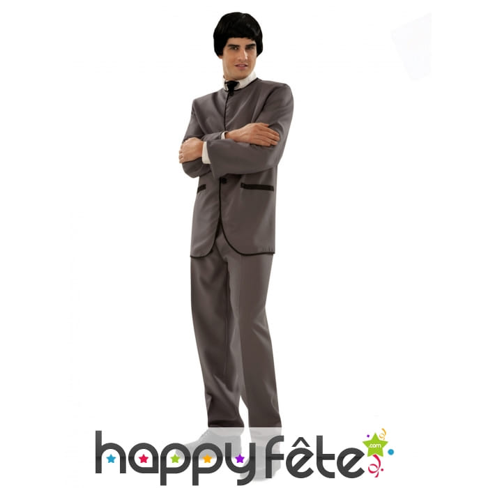 Le pantalon quant à lui est gris uni pour une harmonie de couleur parfaite qui remet le look des Beatles au goût du jour.