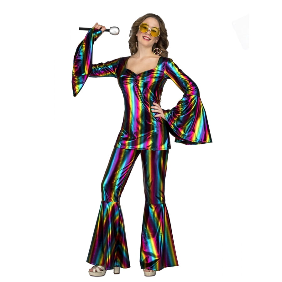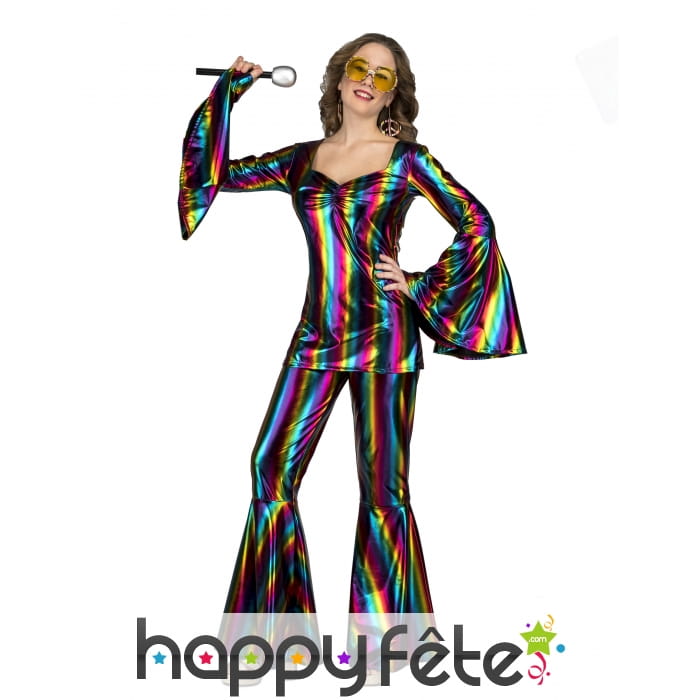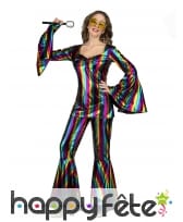 Craquez pour ce costume disco multicolore pour femme, et faites sensation sur une piste de danse lors d'un soirée sur le thème rétro.
