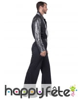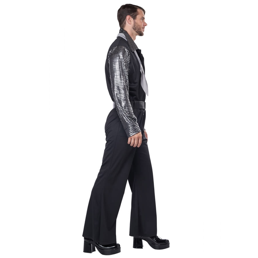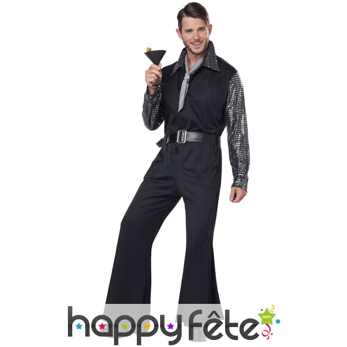 Illuminez une soirée dédiée aux seventies, avec le costume disco noir argenté pour homme.