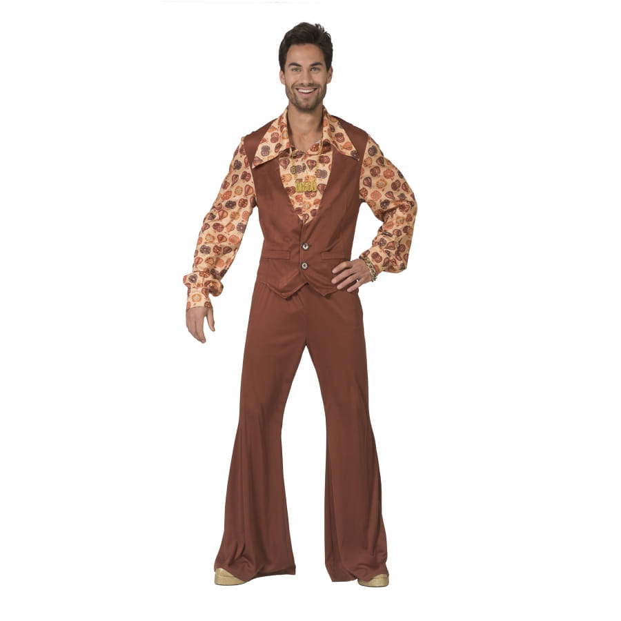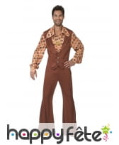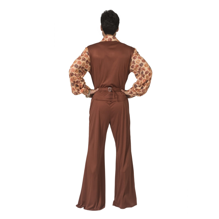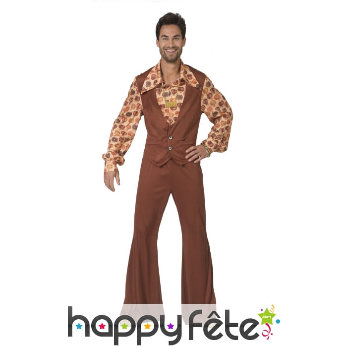 Optez pour ce costume disco pattes d'éph marron pour homme, et mettez en plein la vue lors d'une soirée sur le thème des années 70-80.