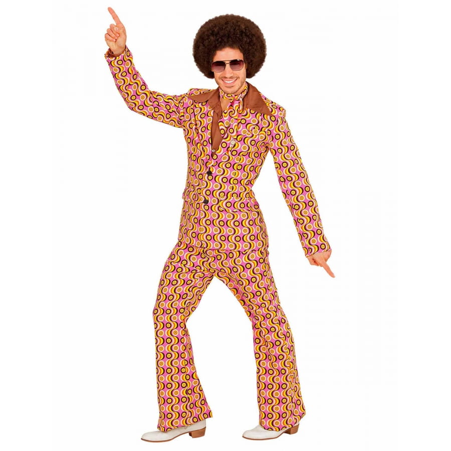 Vive les années 70 avec ce costume disco psychédélique orange homme !