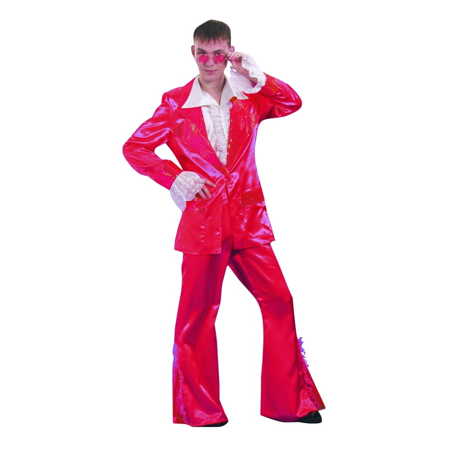 Un effet sensationnel, c'est ce que vous recherchez? Dans ce costume disco king de couleur rouge vous serez le roi de la soirée disco. Si vous partez à une soirée disco ce costume en polyester satin de bonne qualité est parfait. Idéal pour vos soirées à thème comme disco, carnaval ou même une soirée basée sur les années 70. Vous pourrez aussi incarner un danseur dans ce déguisement qui existe en deux tailles:50/52 et 54/56. Il est composé d'un pantalon à pattes d'éléphant rouge avec des volants au bas. D'une veste rehaussée de paillettes et d'une chemise à ruches blanche.