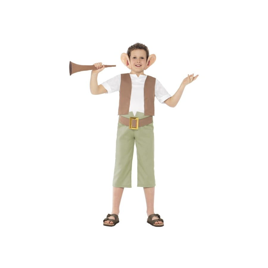 Ce costume du Bon Gros Géant, du fameux roman de l'auteur anglais, Roald Dahl, s'adresse aux garçons qui souhaitent incarner un gentil géant légendaire. Ce déguisement se compose d'un haut blanc et marron, d'un pantalon vert avec ceinture, d'un serre tête oreille et d'un cor. Il est disponible en deux tailles : Pour les enfant de 7-9 ans et pour les enfants de 10-12 ans.