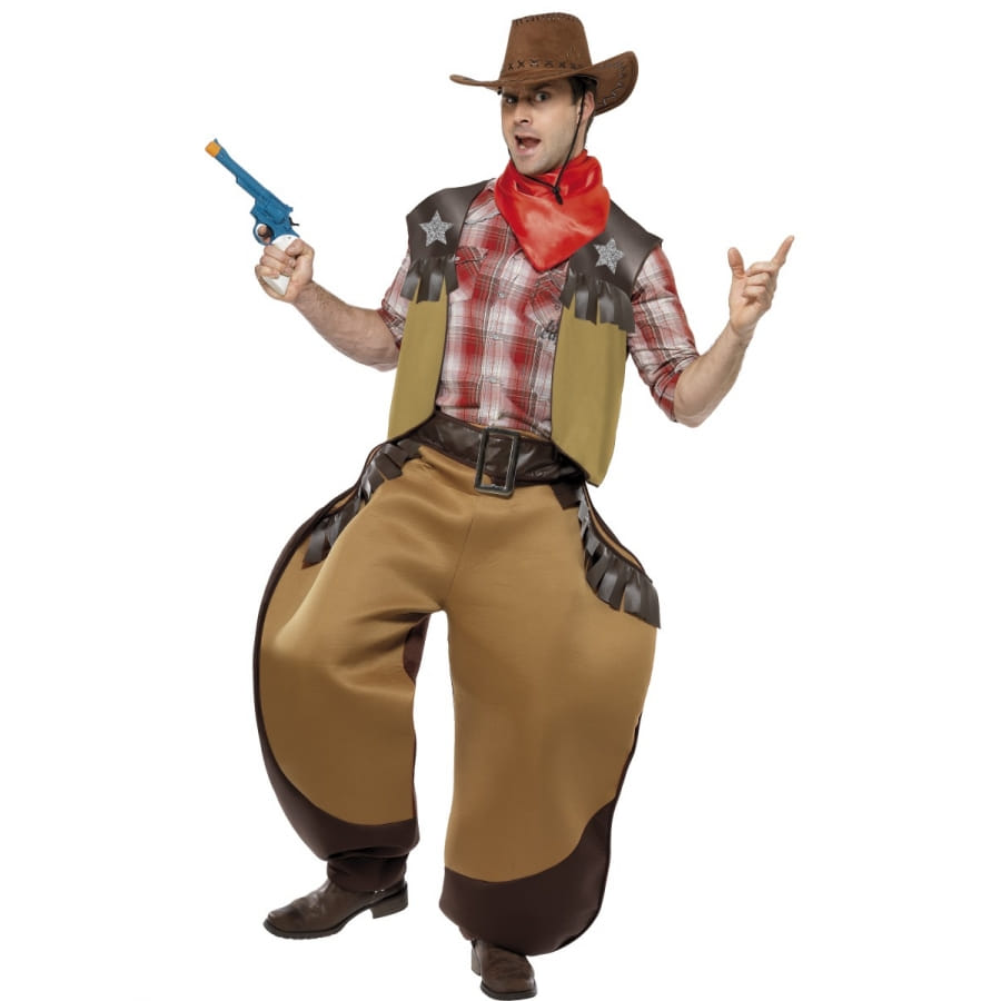 Vous serez le parfait cowboy avec ces chaps larges, ce gilet, cette ceinture et le bandana. Cet ensemble marron est disponible en taille M. Il est idéal pour se transformer en Big Bad pour un carnaval ou un anniversaire.