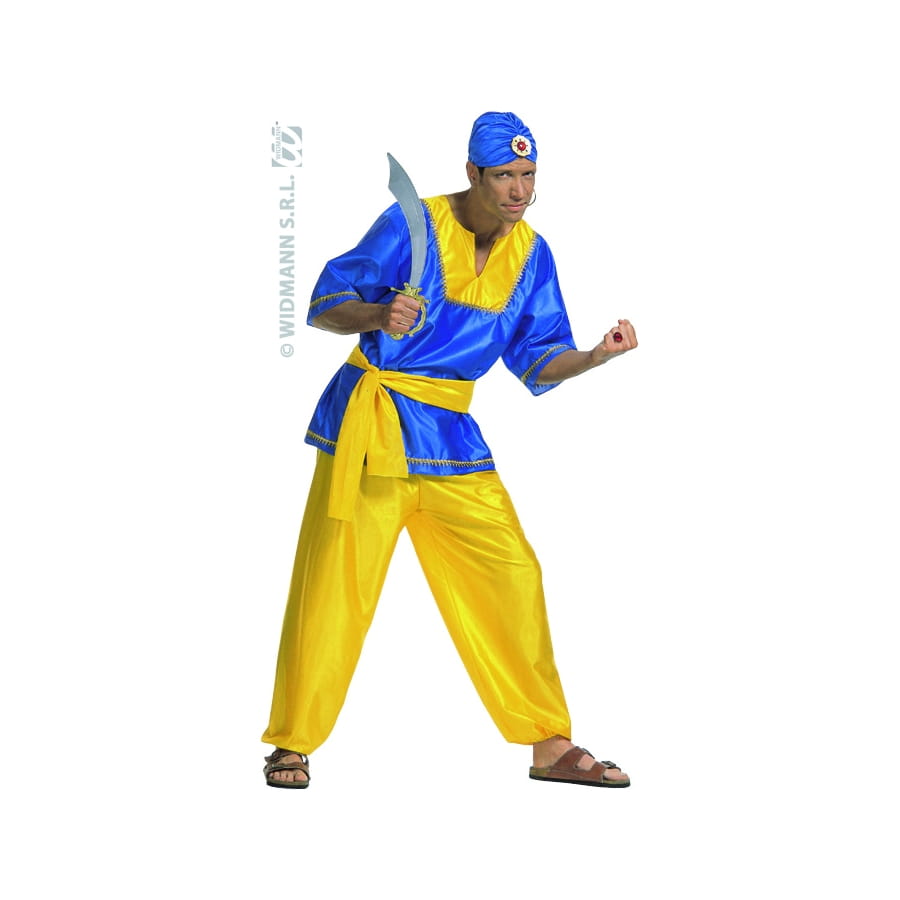 Les mille et une nuits vous inspirent, déguisez-vous en prince des voleurs grâce à ce costume. Pour le carnaval ou une soirée à thème oriental vous vous métamorphoserez en prince des voleurs à l'aide de costume. Il est composé d'une tunique bleu et jaune, avec le pantalon jaune assorti. Sans oublier le turban bleu avec une jolie broche au centre.