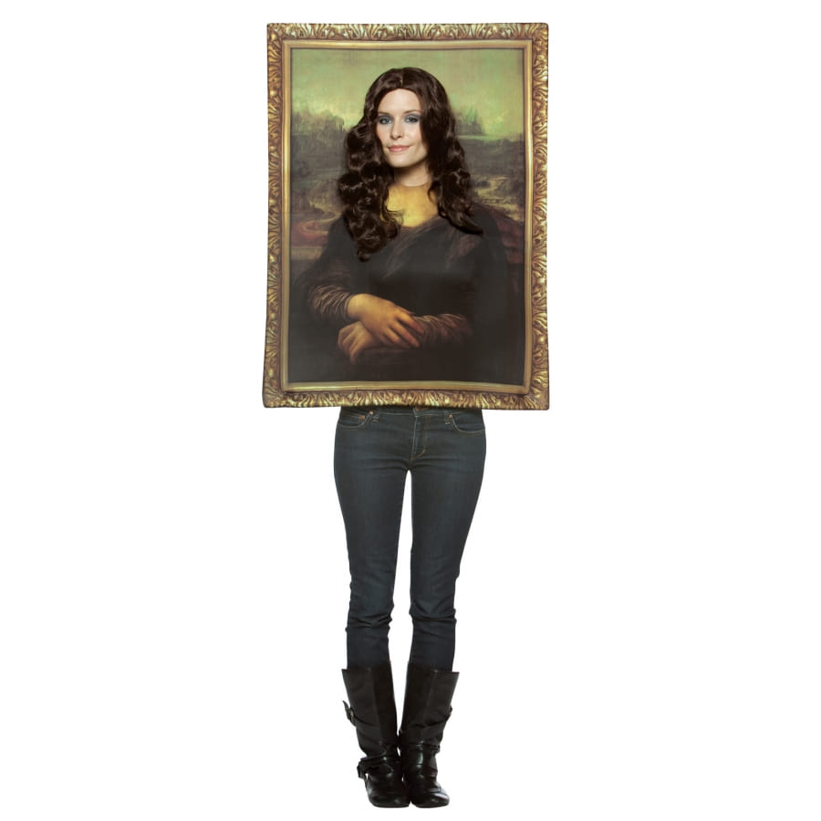 Le portrait de La Joconde est un tableau de renommée mondiale. Un peu d'humour ne fait jamais de mal pour une soirée déguisée. Laissez-vous convaincre par ce costume du tableau de La Joconde. Vous deviendrez la nouvelle version de Mona Lisa dans ce tableau en mousse souple. Vous vous retrouverez alors dans la peau du personnage dans une robe vert sombre en soie plissée sur le devant, avec des manches jaunes. Le paysage montagneux vert au fond a été minutieusement reproduit. Le tableau présente un emplacement vide pour le visage. Des tubes en plastique sont également fournis pour bien maintenir le tableau. Pour les messieurs, il est conseillé de rajouter une perruque au déguisement pour un effet plus réaliste.