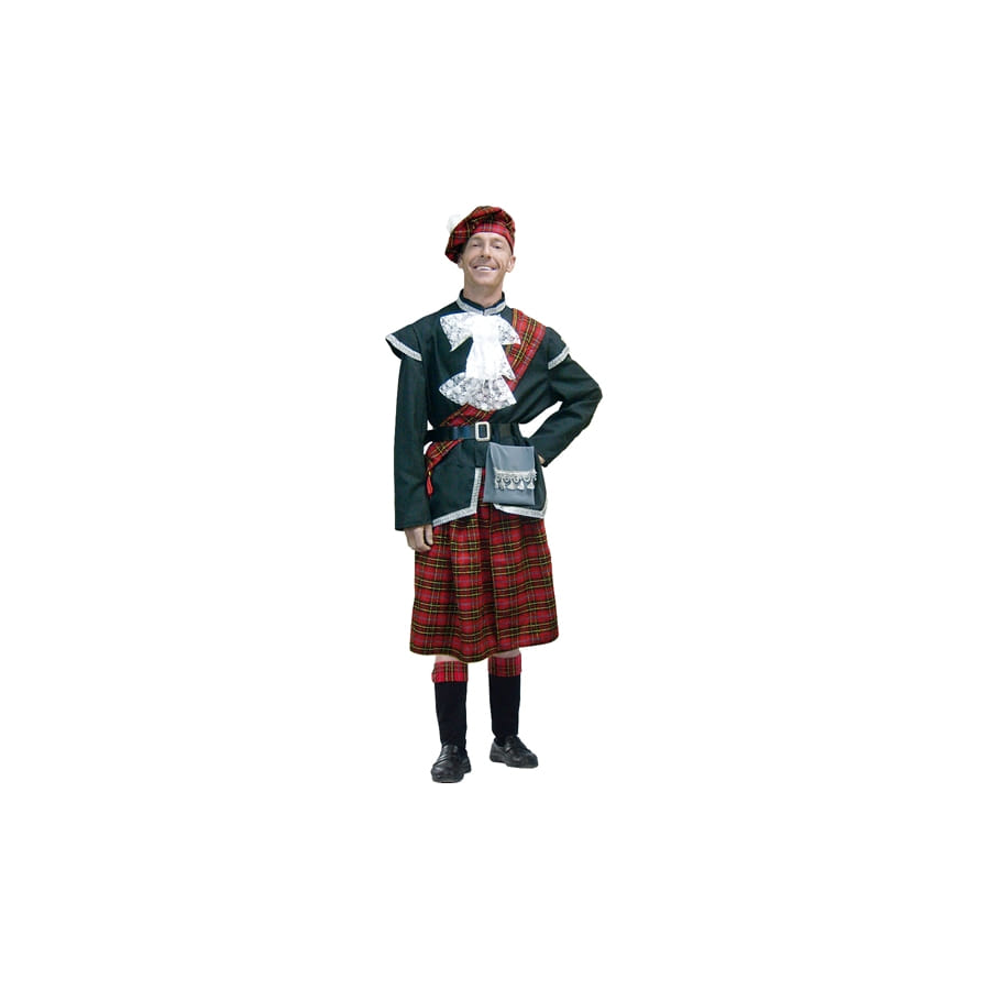 Aventurez-vous lors d'un événement adéquat à mettre ce déguisement folklorique écossais pour homme et affichez l'étendue des diversités culturelles mondiales. Disponible en taille 50-52/54-56, cet ensemble composé d'un kilt, d'une veste, d'une coiffe, d'un plastron, d'une écharpe, d'une ceinture avec sac et de guêtres est fait de couleurs rouge, noire et verte. Rajoutez un cornemuse et enchantez tout le monde par vos prouesses musicales.