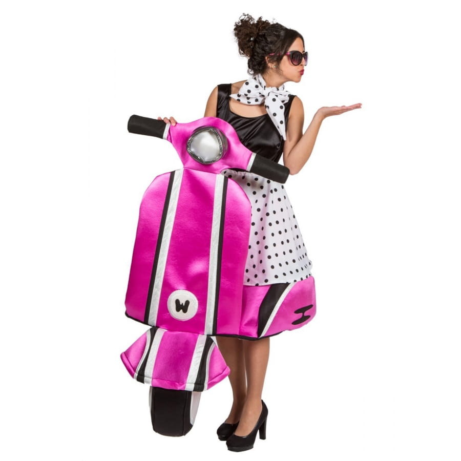 Glissez-vous dans la peau d'Audrey Hepburn dans le film les Vacances Romaines le temps d'une soirée sous le thème des années 60 ou d'un carnaval en portant ce costume en vespa rose pour femme.