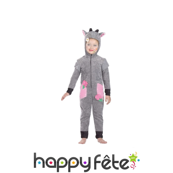 Si vous avez un enfant tout aussi gentil que doux de caractère, le meilleur déguisement à lui choisir à l'occasion d'une fête serait ce costume d'agneau. Il est fait d'une combinaison grise avec des poches roses ornées de petites fleurs. Dessinez-lui, comme maquillage, une petite fleur sur le visage et le tour est joué ! Déguisement disponible en taille 104/116/128/140 cm.