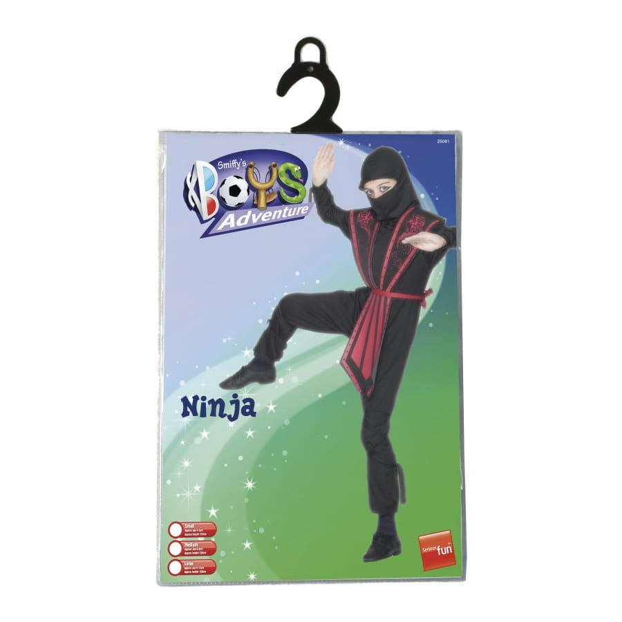 En deux temps trois mouvements, votre enfant sera un Ninja avec cette cagoule, la ceinture, la combinaison et les bandes. Cet ensemble est disponible en tailles L et M. Il est idéal pour un déguisement de ninja expert en arts martiaux.