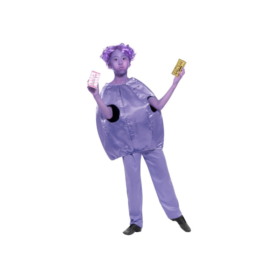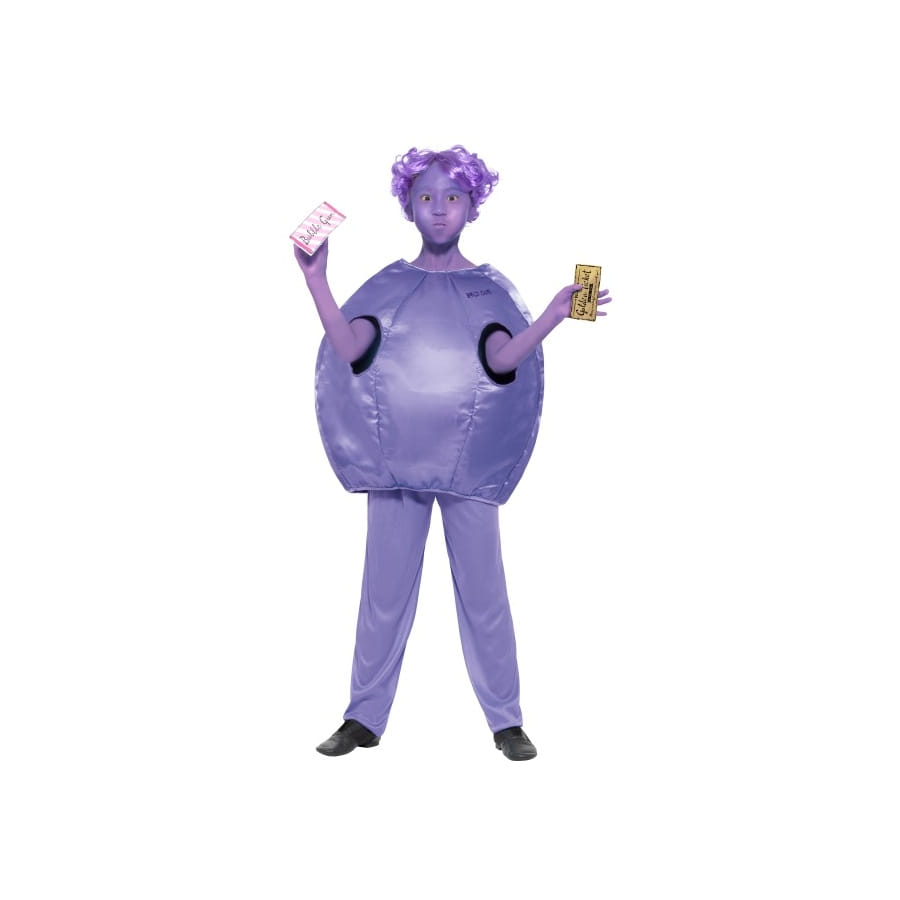 Elle adore les chewing-gums et elle aime bien la compétition ! Retrouvez-la dans la fabrique de chocolat de Willy Wonka grâce à son ticket d'or. Il sera très amusant d'incarner Violette dans ce beau costume enfant de Violette Beauregard, Roald Dahl. Sous licence Charlie et la chocolaterie, il présente un ensemble haut et pantalon de couleur violet accompagné de quelques accessoires. Le haut ressemble à une sphère avec des emplacements vides pour les bras. Le pantalon possède une coupe très classique. La série accessoires est formée par un ticket d'or avec inscription "golden ticket", ainsi qu'un faux paquet de chewing-gums de couleur rose. L'ensemble est prévu en différentes tailles pour les 7 à 12 ans.