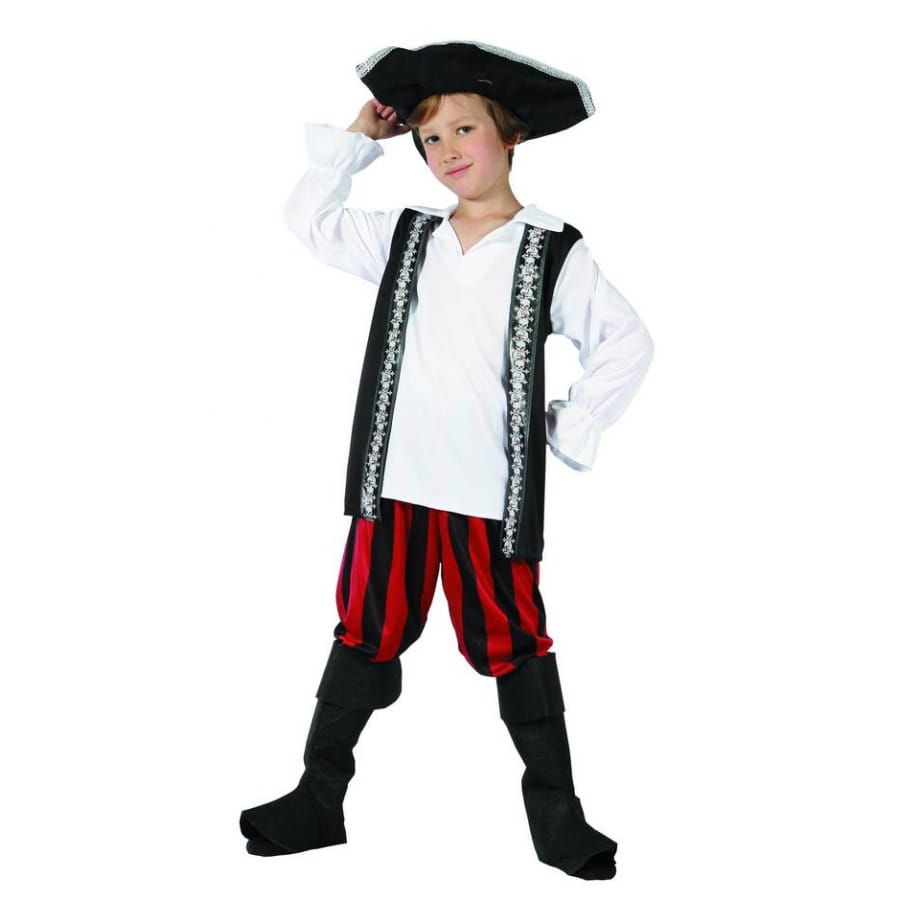 Allez à la conquête des mers sauvages en enfilant ce Costume enfant pirate pantalon rouge et noir.