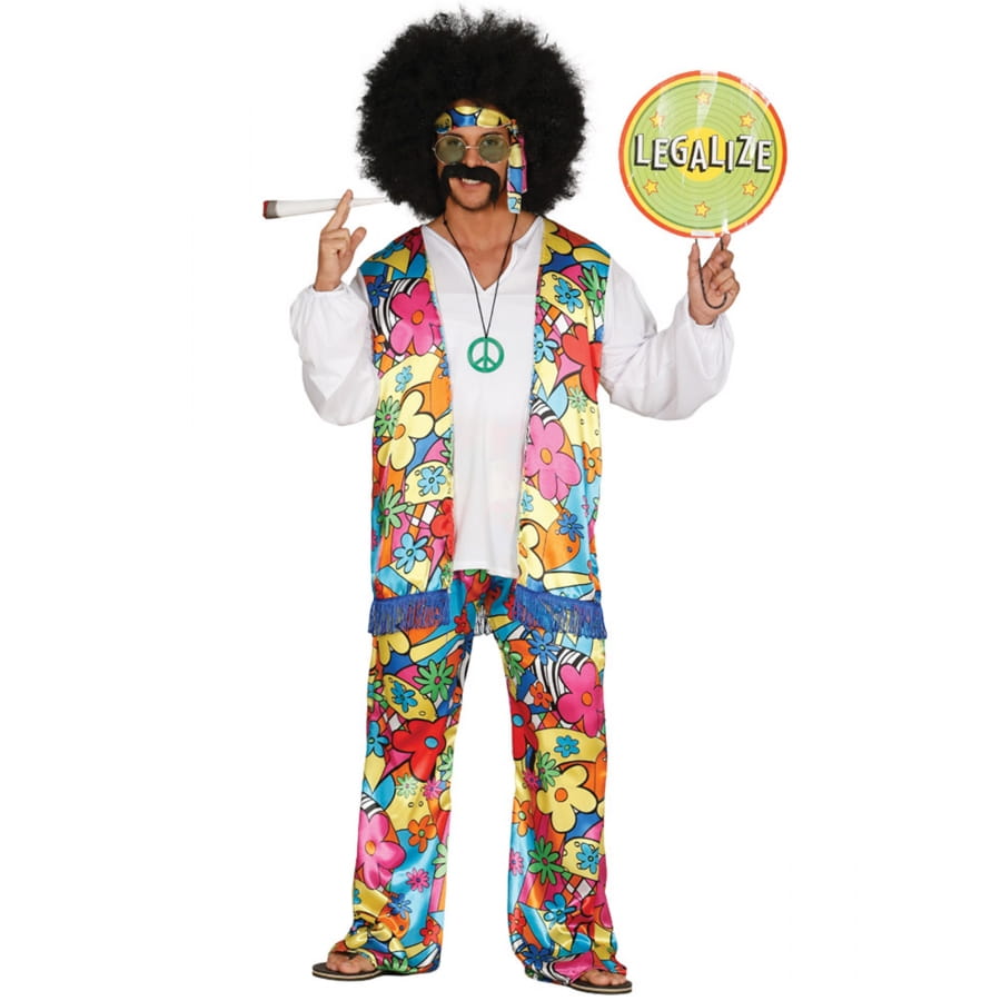 Ce déguisement de hippie pour homme vous mettra parfaitement dans le thème d'une soirée années 60 et 70.