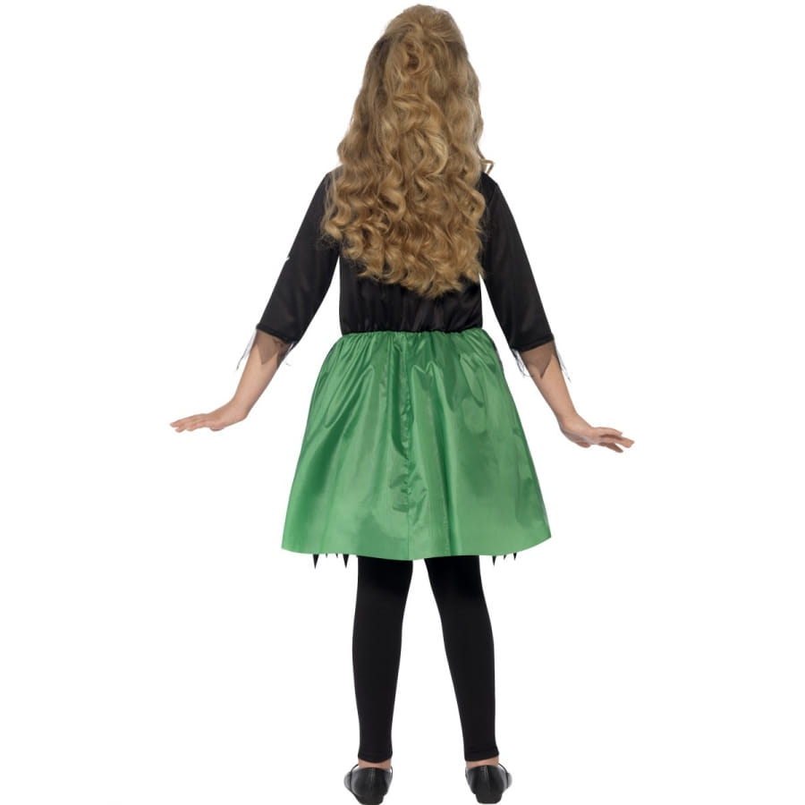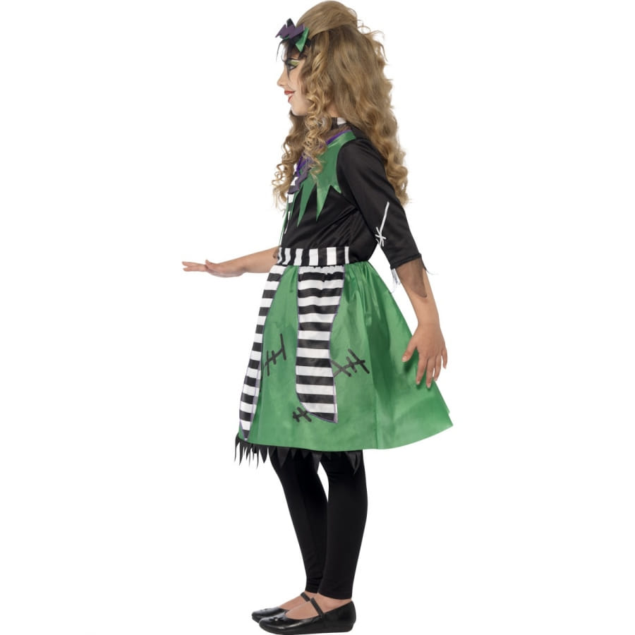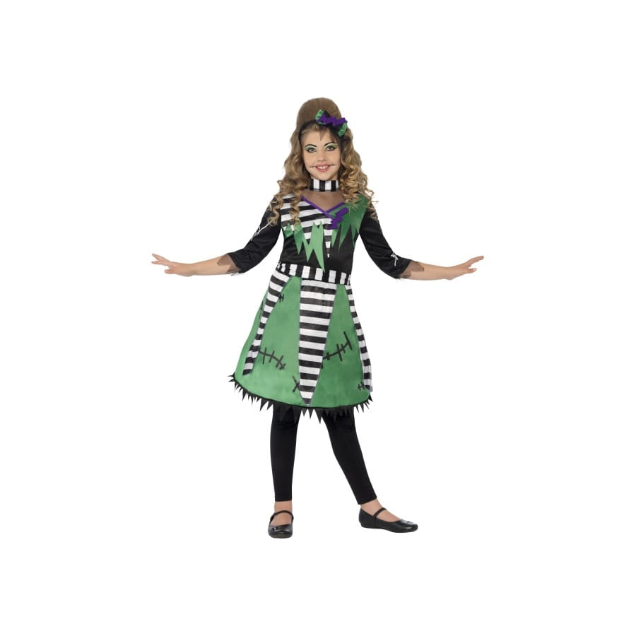 Habillez votre enfant avec les personnages de film d'horreur pour Halloween, avec ce costume de fiancée de Frankenstein pour enfant que nous proposons ici. Ce déguisement met en avant une robe à rayures noires et blanches avec des parties en noir ou vert, dont le bas a été découpé pour donner un style en lambeau. Il comprend aussi un serre-tête de couleur noire avec un noeud violet et vert. Les tailles que nous avons pour vous correspondent à des tailles pour les petites filles de 10 à 12 ans, 7 à 9 ans et 4 à 6 ans.